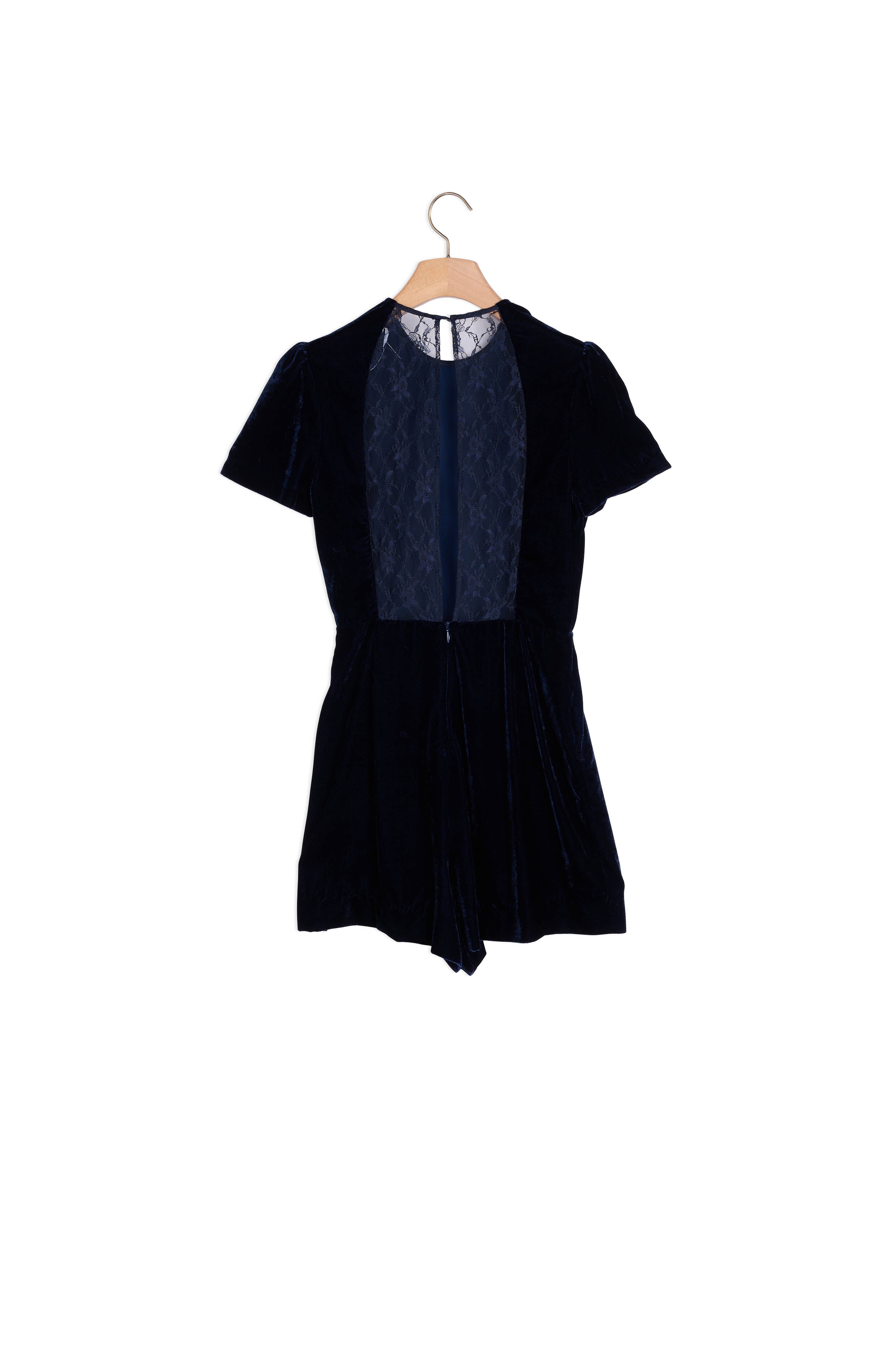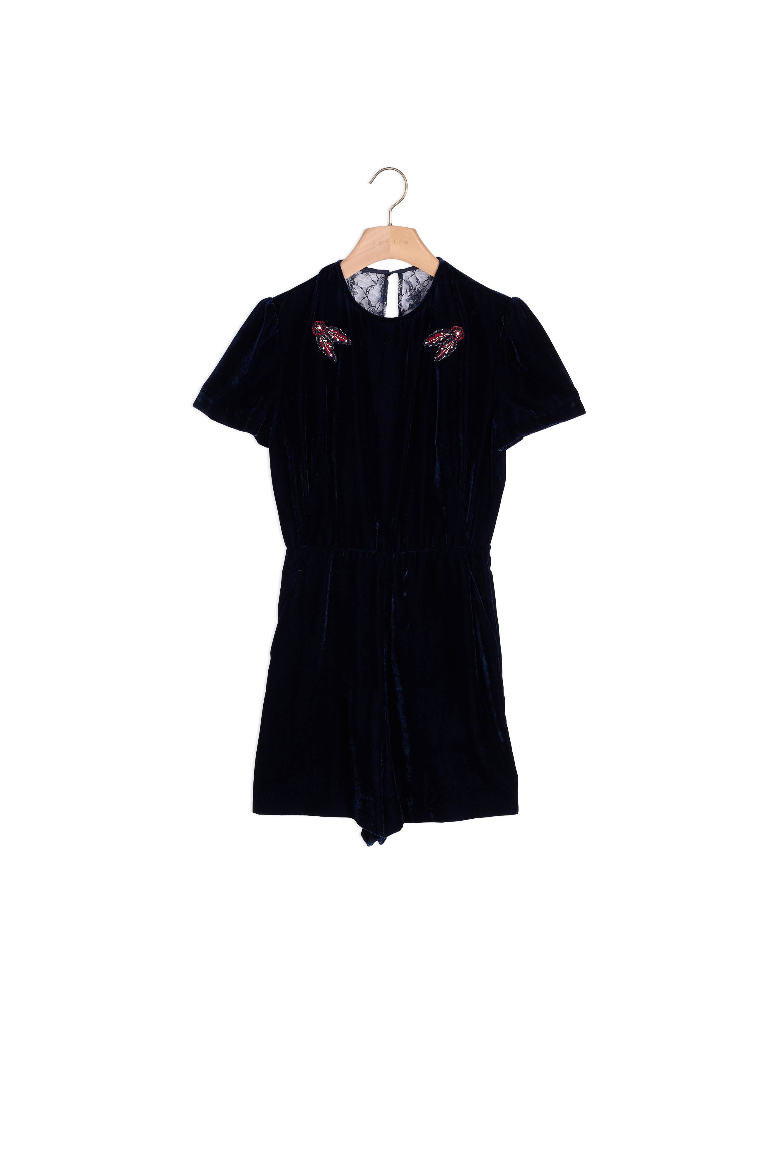 ; Beaded rhinestone flowers on the chest Low back with lace inset fastened by a button Concealed zip at the back of the playsuit Model is wearing a size 1