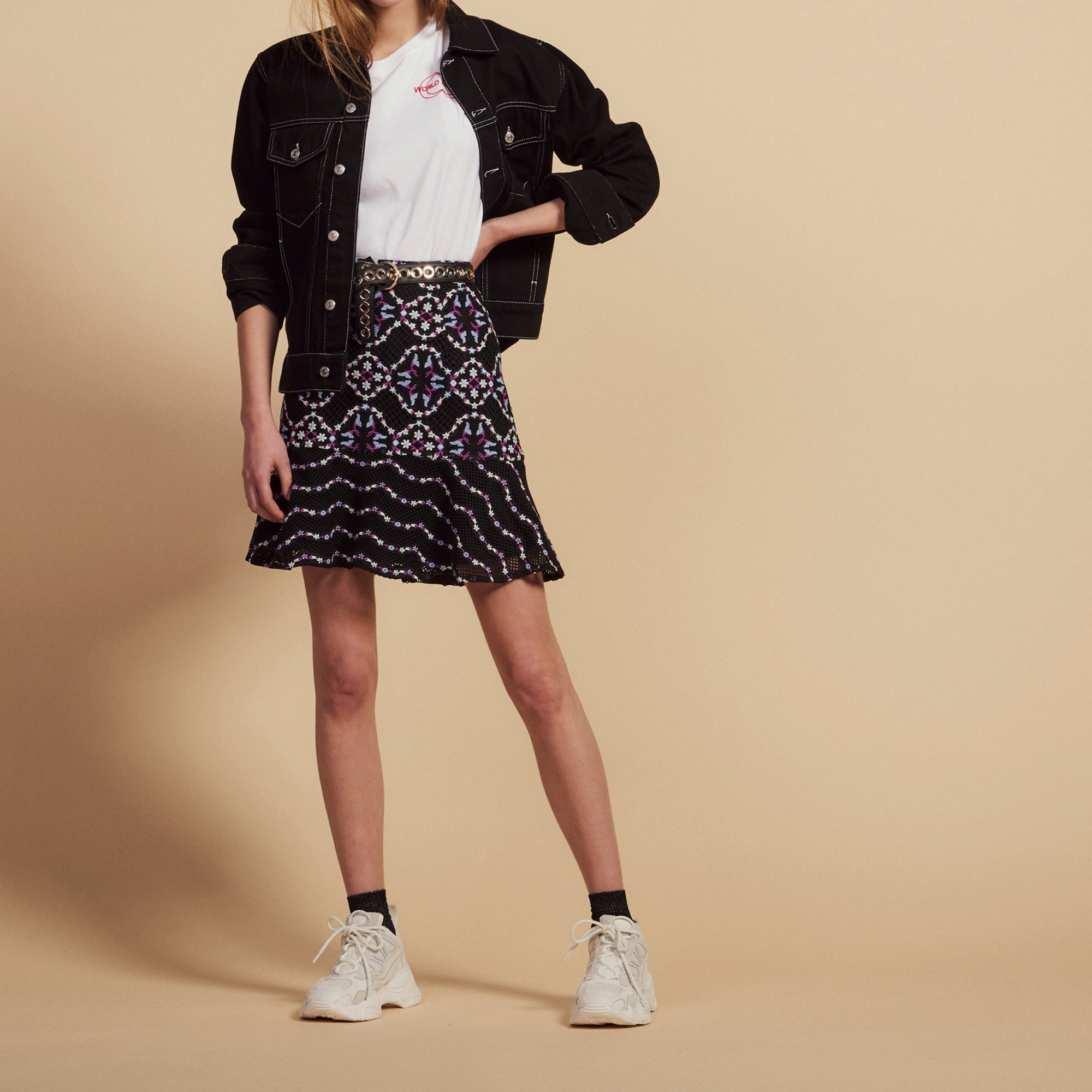 Short guipure skirt