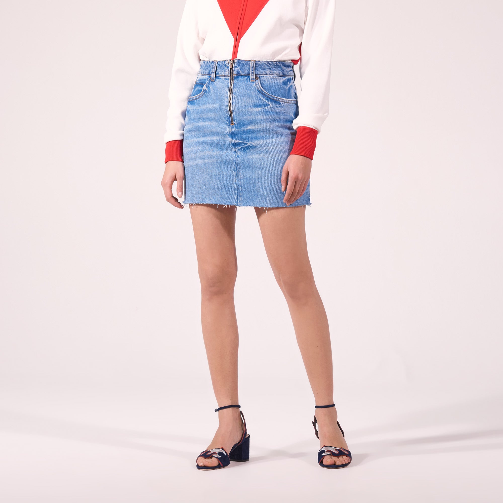 Light-coloured denim skirt with zip