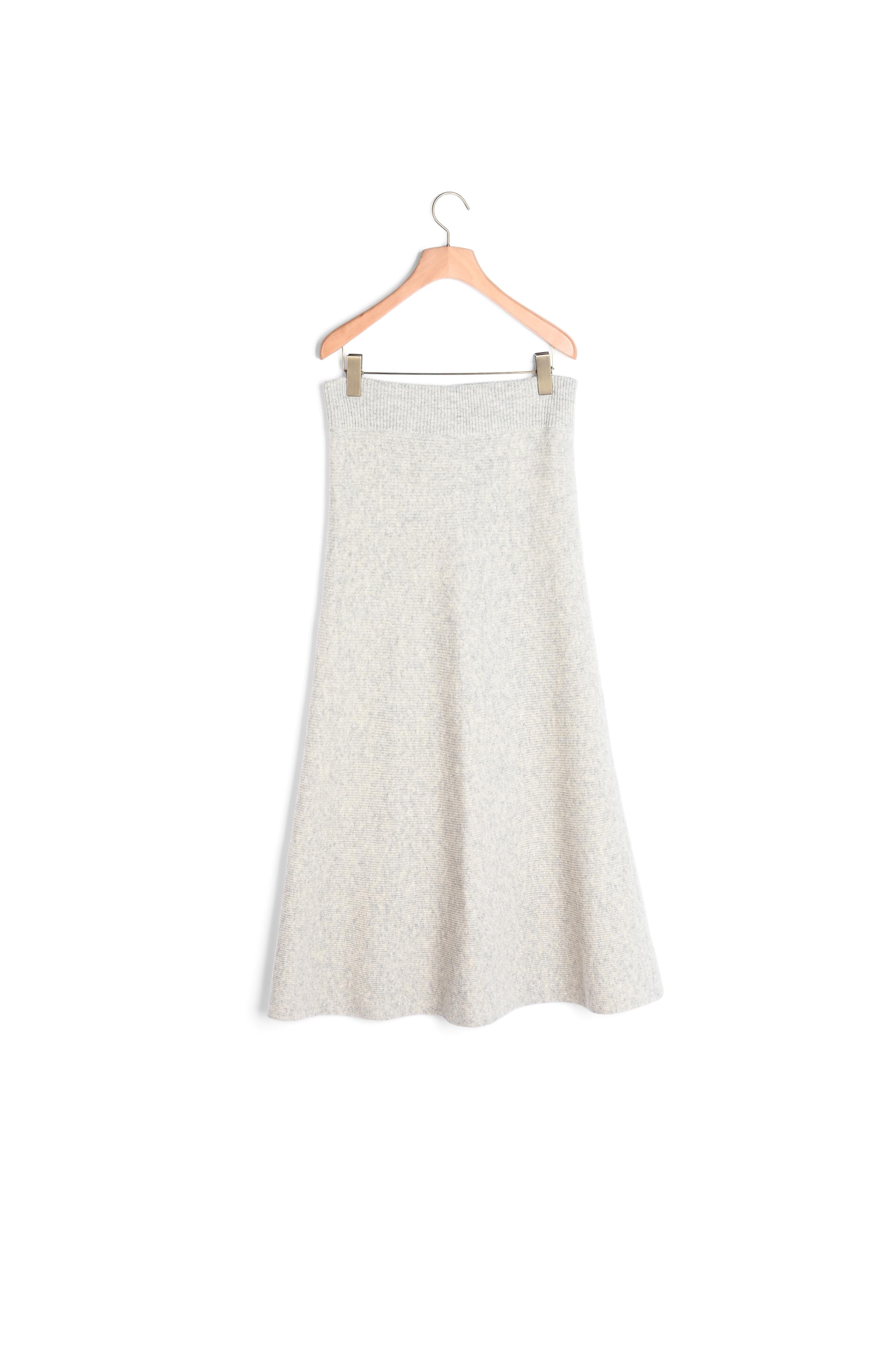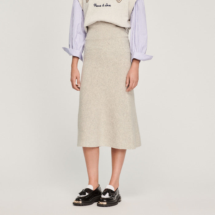 Long flared knit skirt with an elasticated waist.