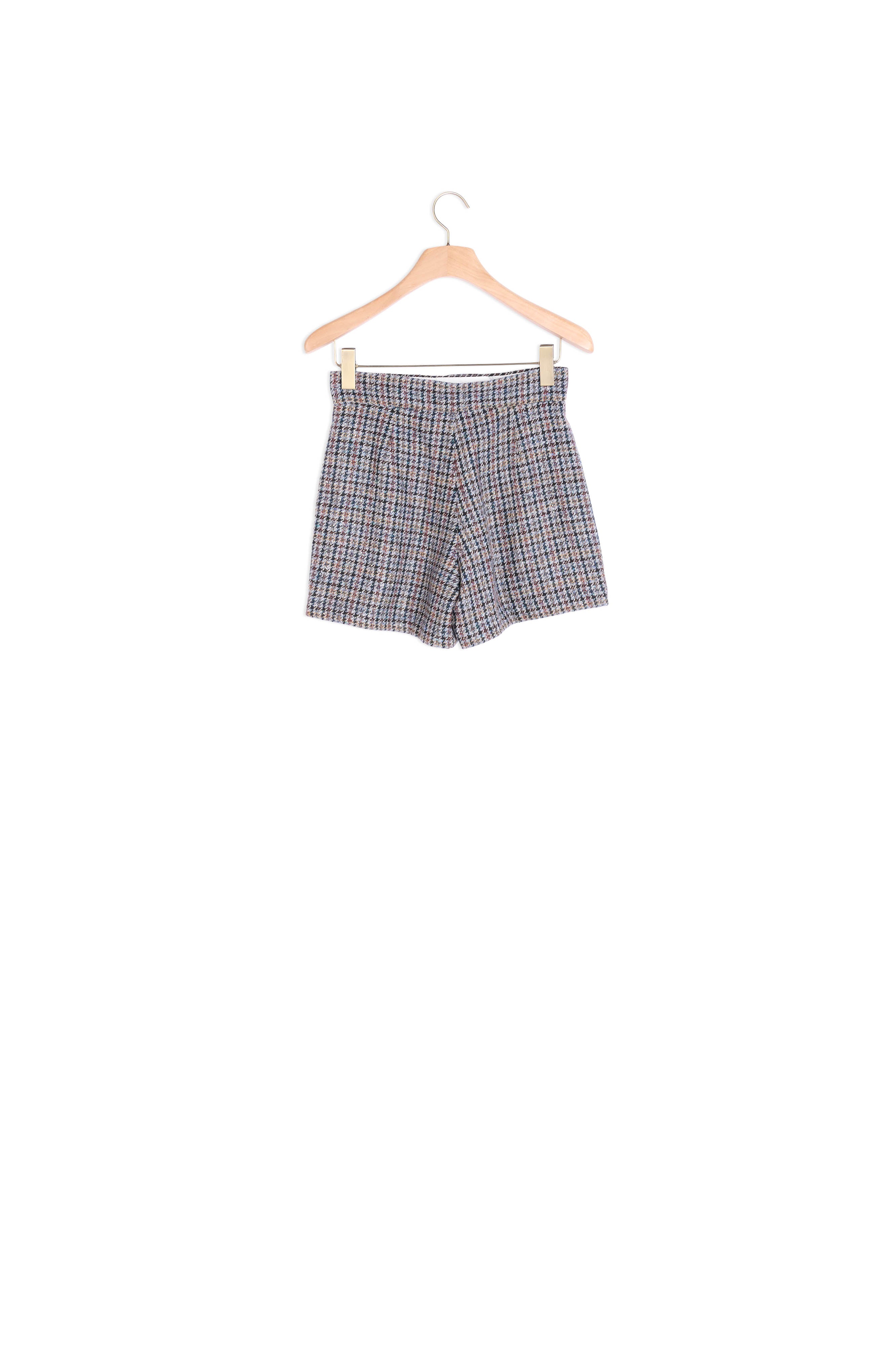 Checked houndstooth shorts with a zip fastening and piped pockets.