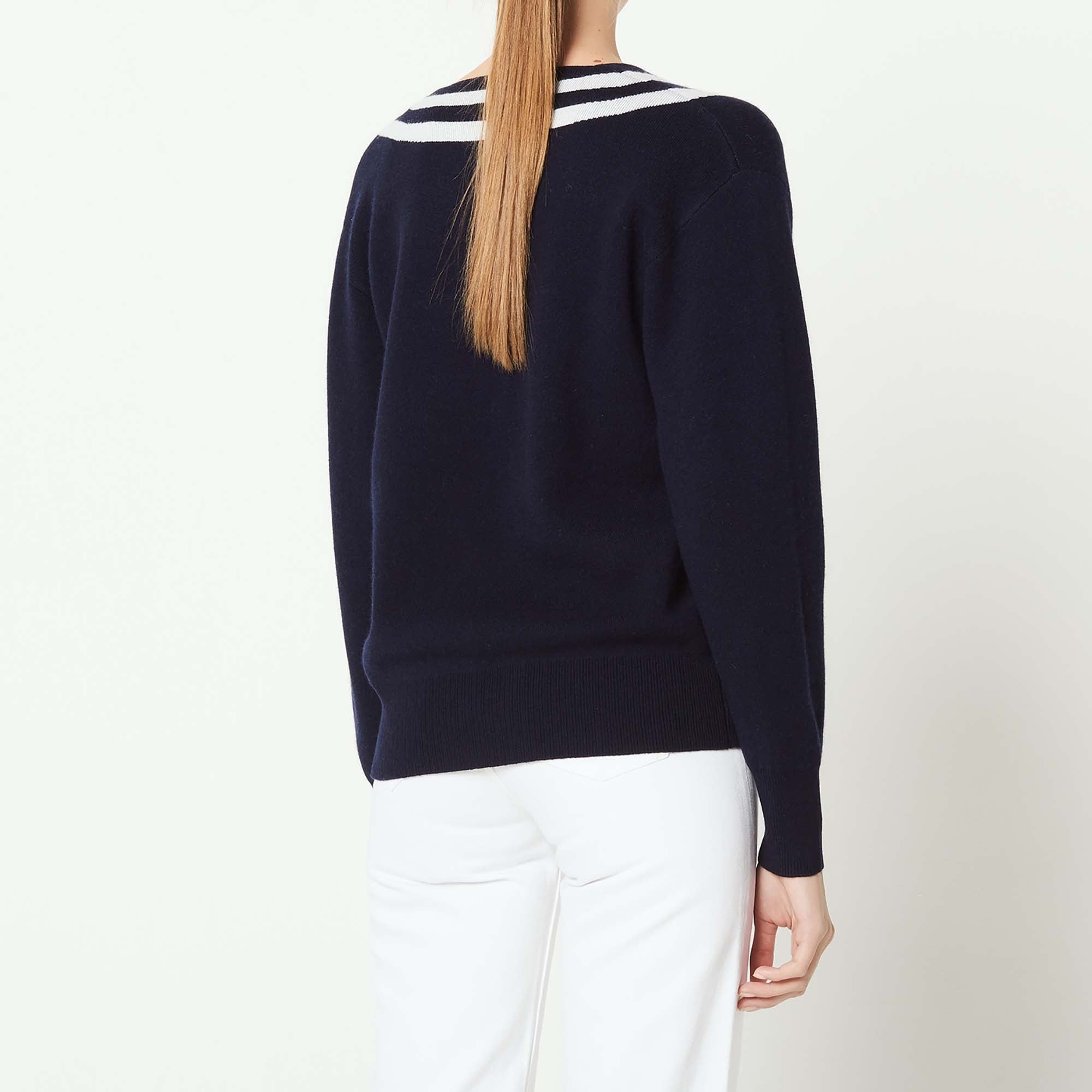 ; V-neck with contrasting bands