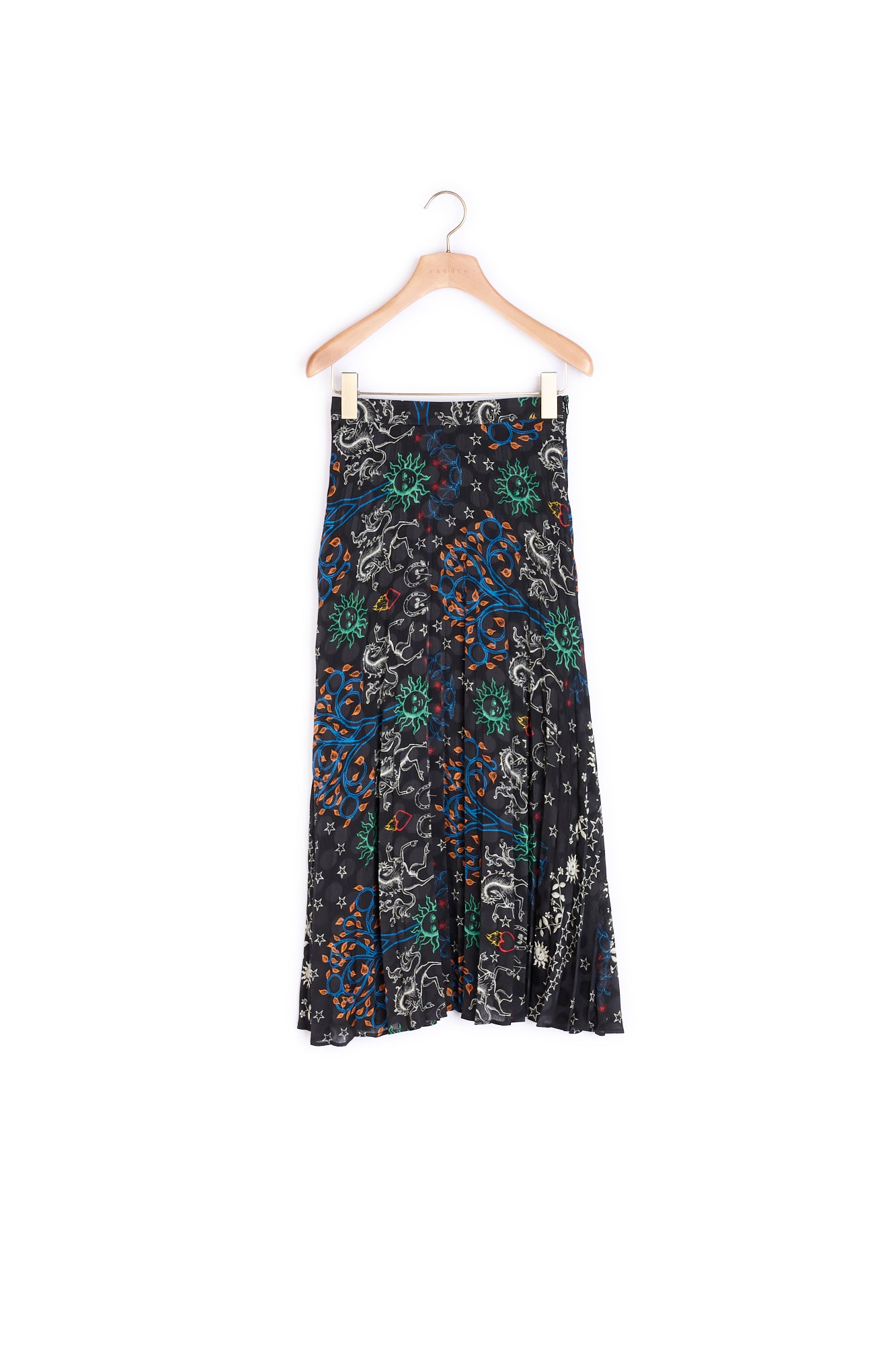 ; Falda larga con estampado en toda la prenda y plisado soleil