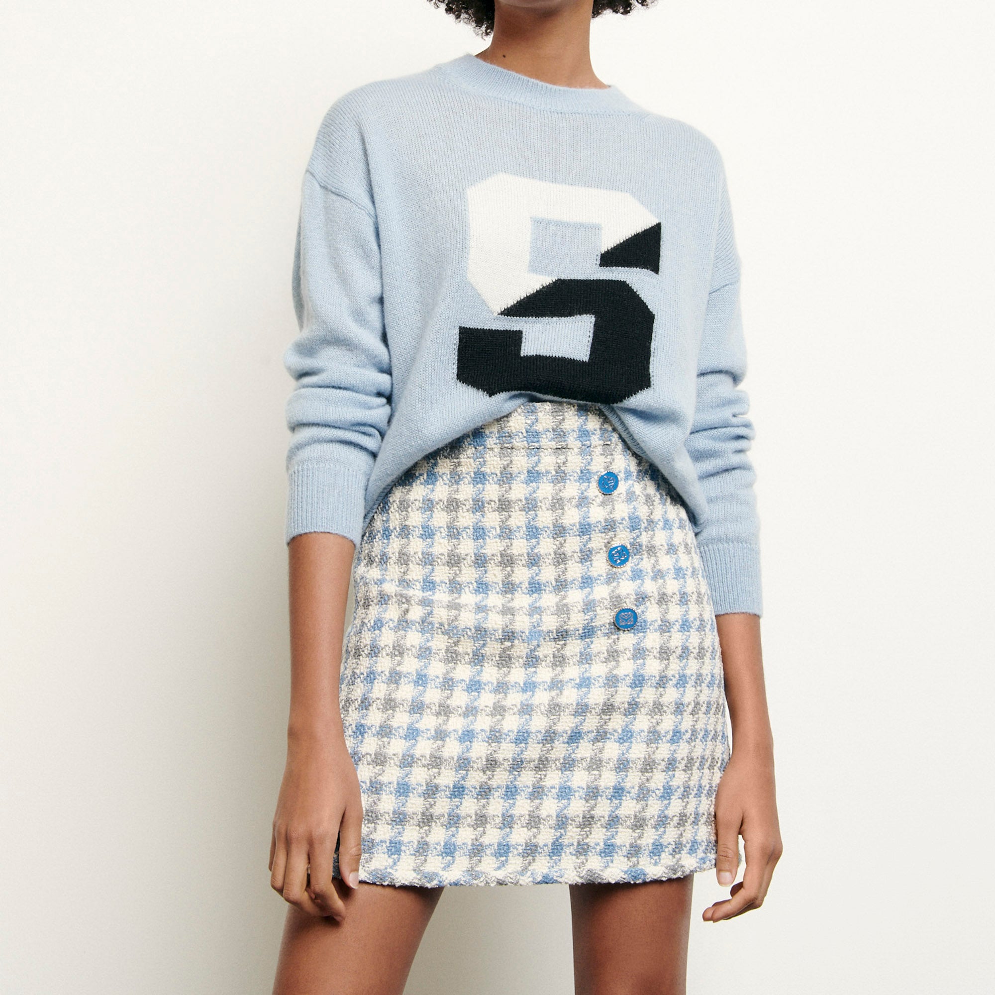 • Jupe courte en tweed pied de coq Sandro seconde main