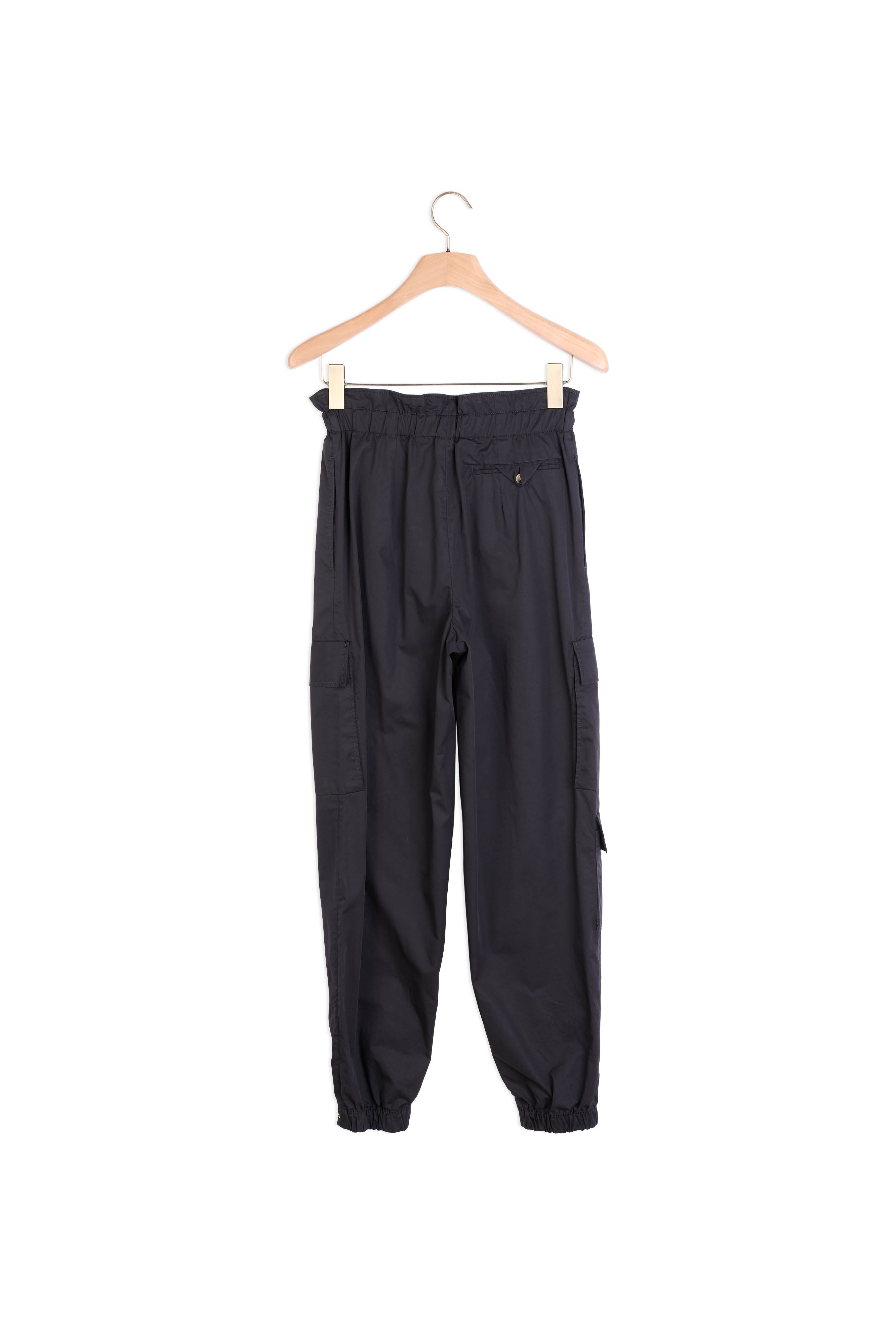 Pantalón cargo de talle alto elástico, con bajo ajustado, bolsillos de parche con solapa en los laterales y cierre de cremallera.