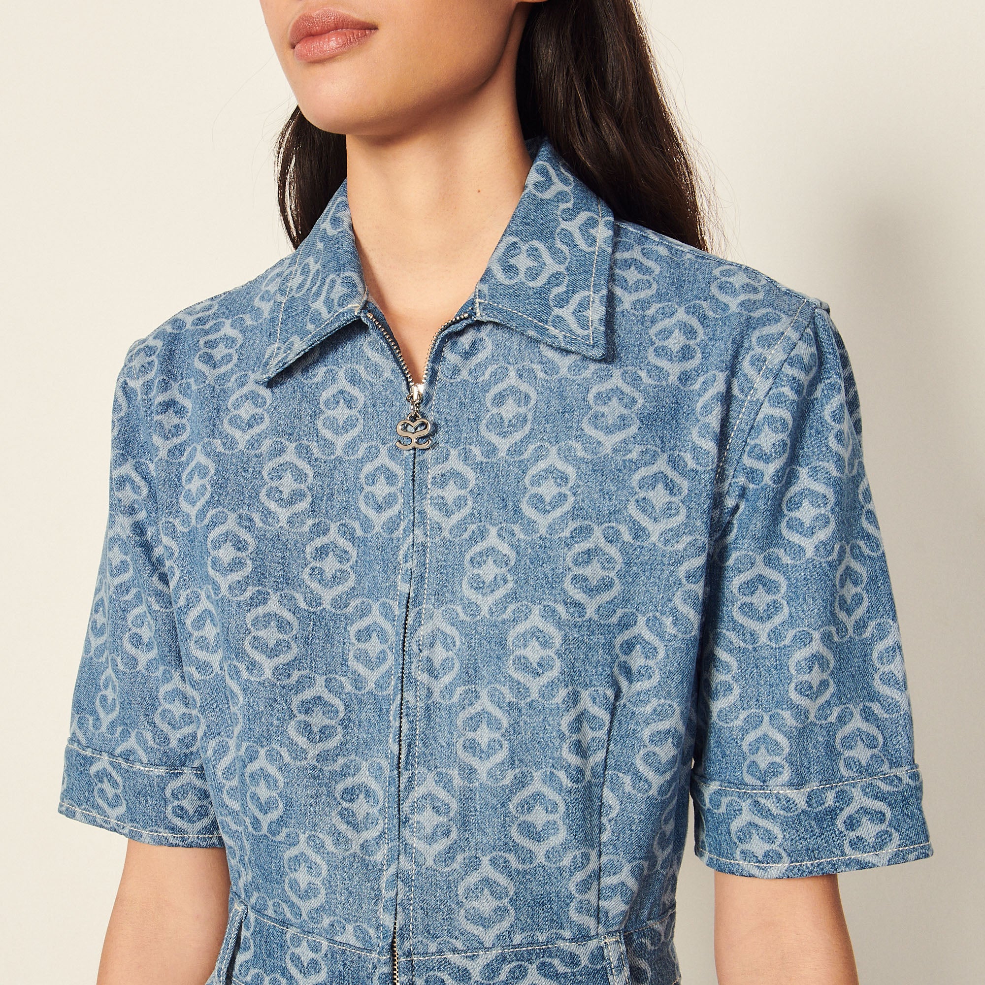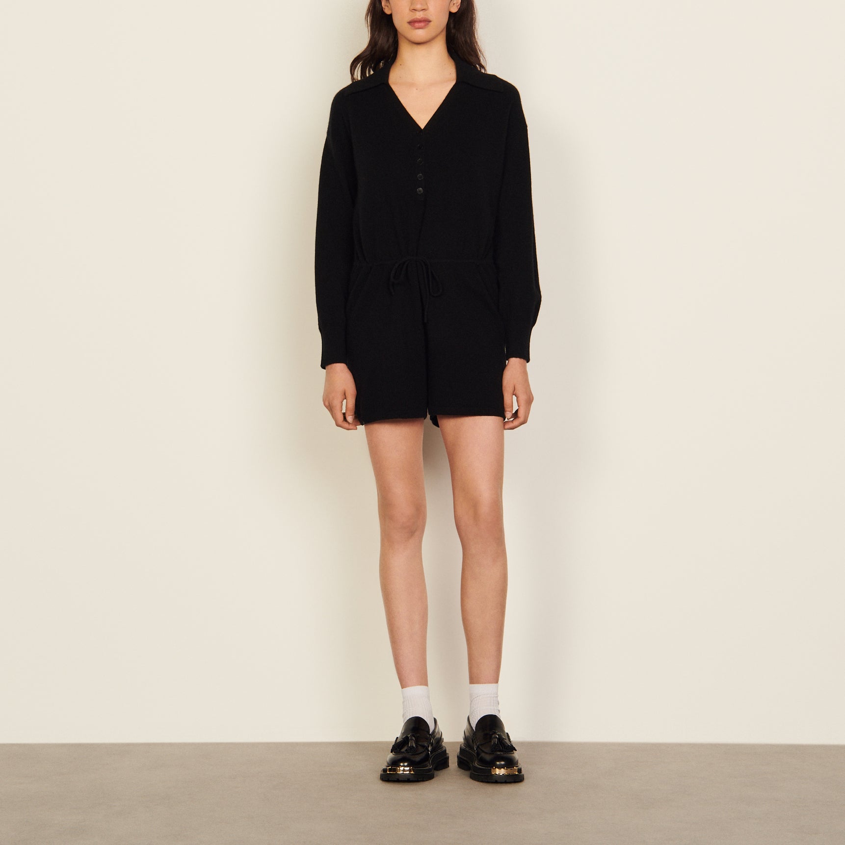 Mono corto de tweed fantasía de manga corta con cierre de cremallera.