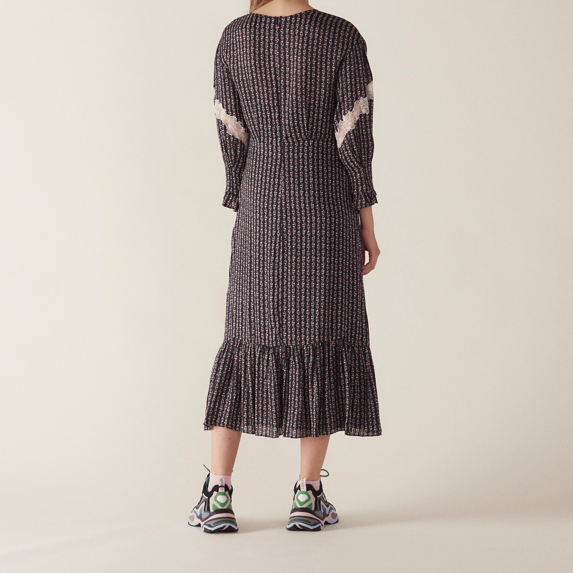 ; Volante en los puños y la parte inferior del vestido