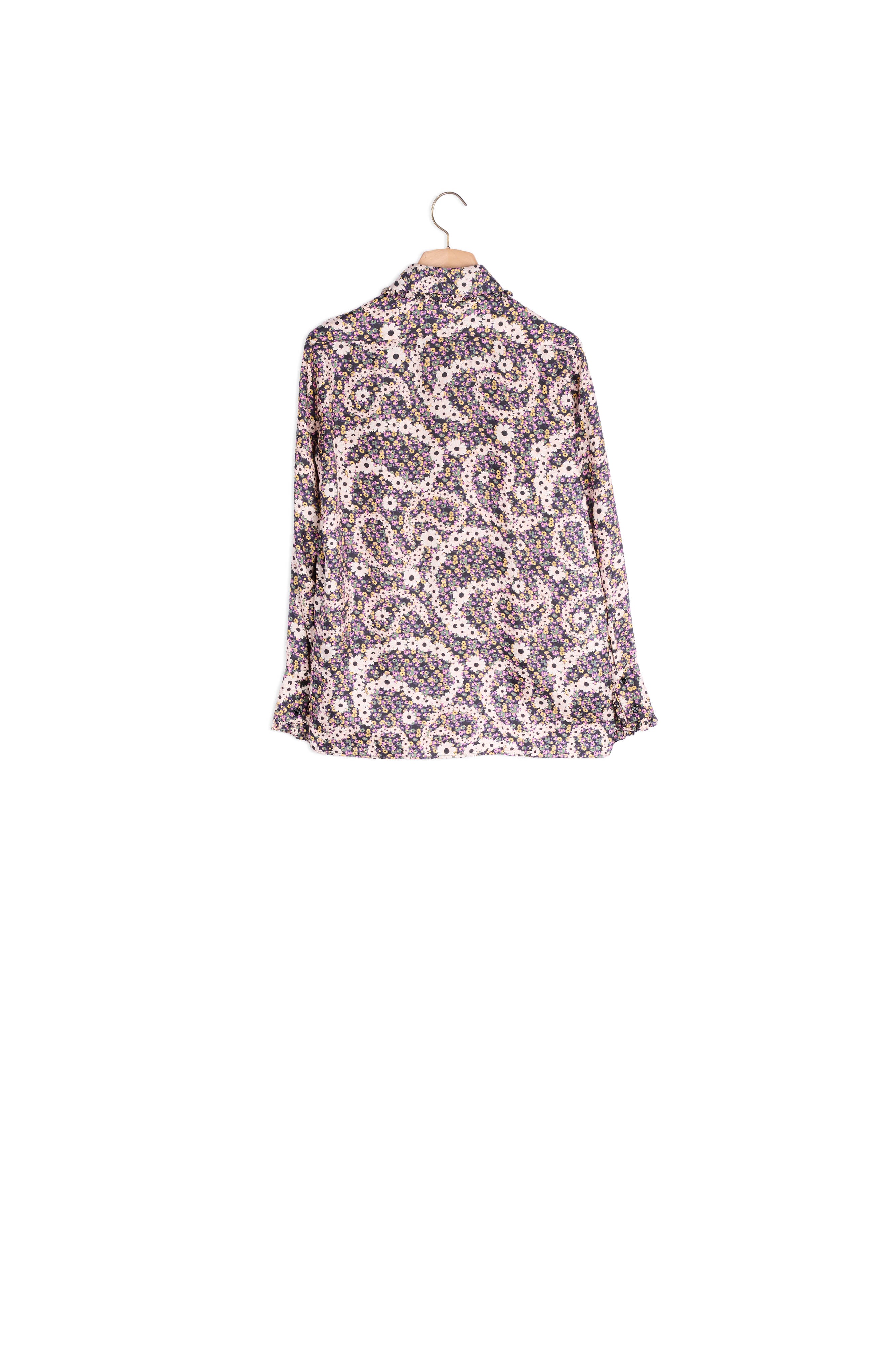 Camisa fluida de seda de manga larga y cierre de botones, sublimada con un estampado de cachemira floral.