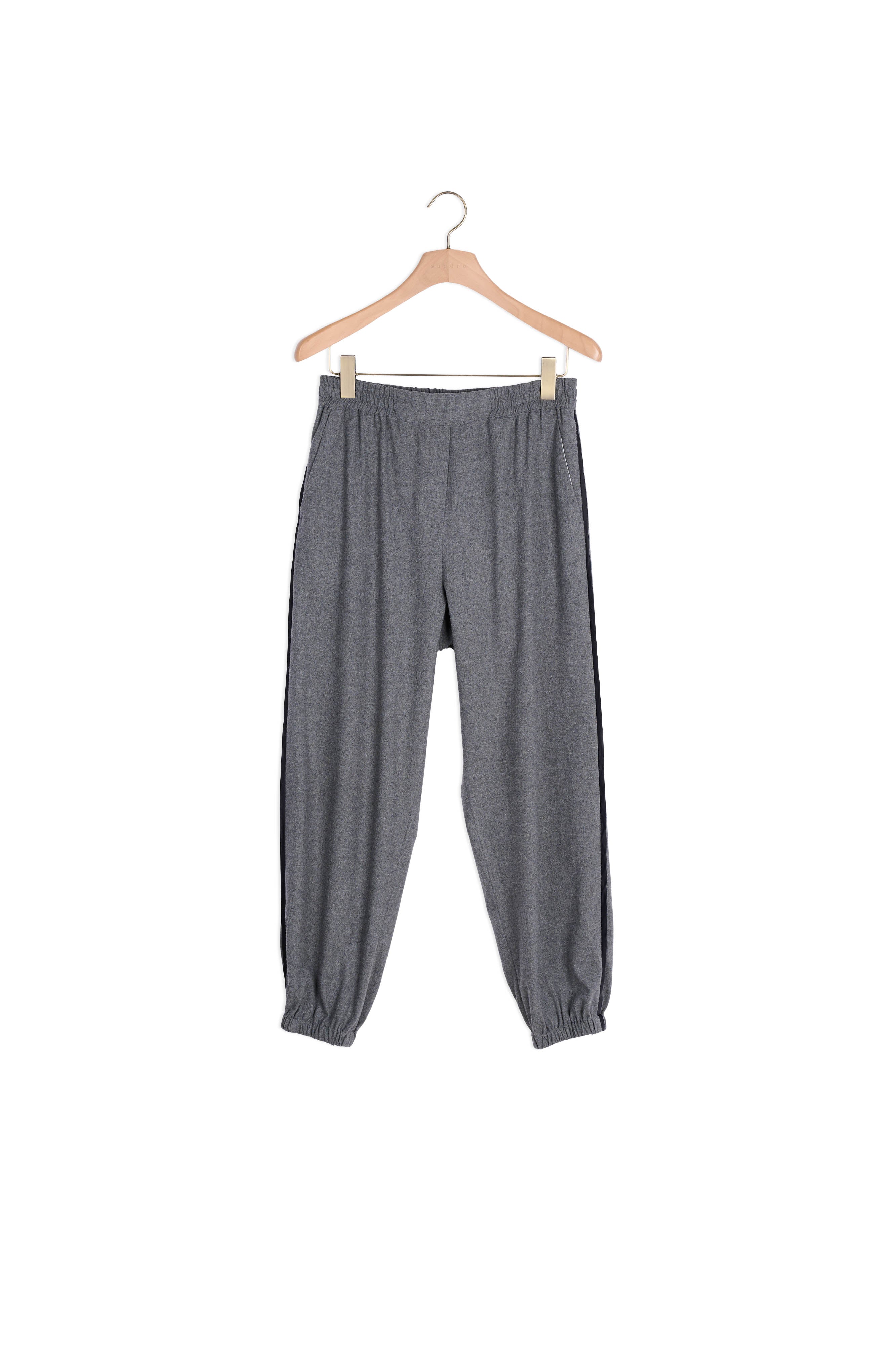 Pantalon élastiqué à la taille muni de détail de passepoil contrasté sur les cotés. ; Pantalon Sandro Femme ; Taille élastiquée ; Détails sur les cotés Le mannequin porte une taille 36 / UK 8 / US 2-4 et mesure 178 cm Référence : SFPPA01023