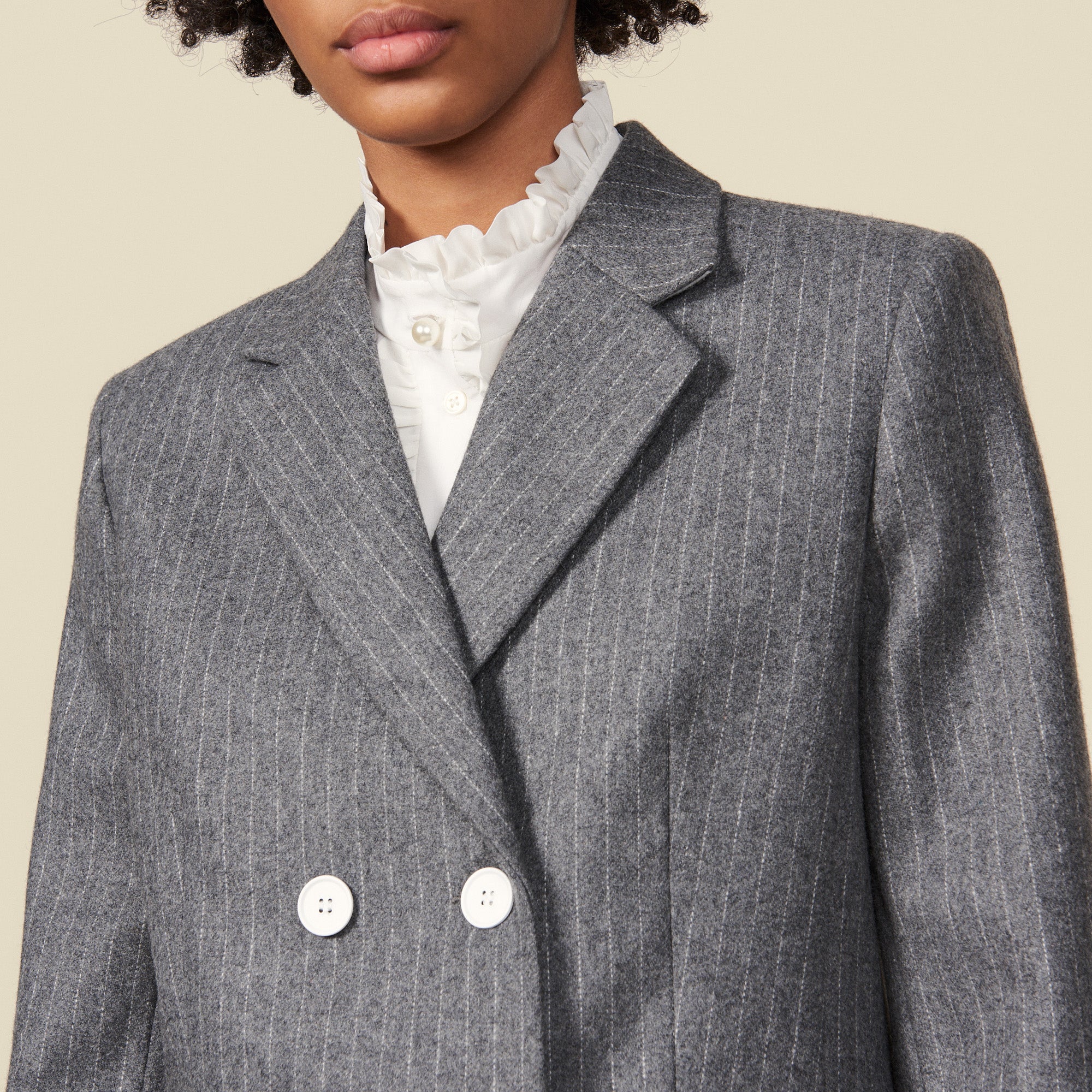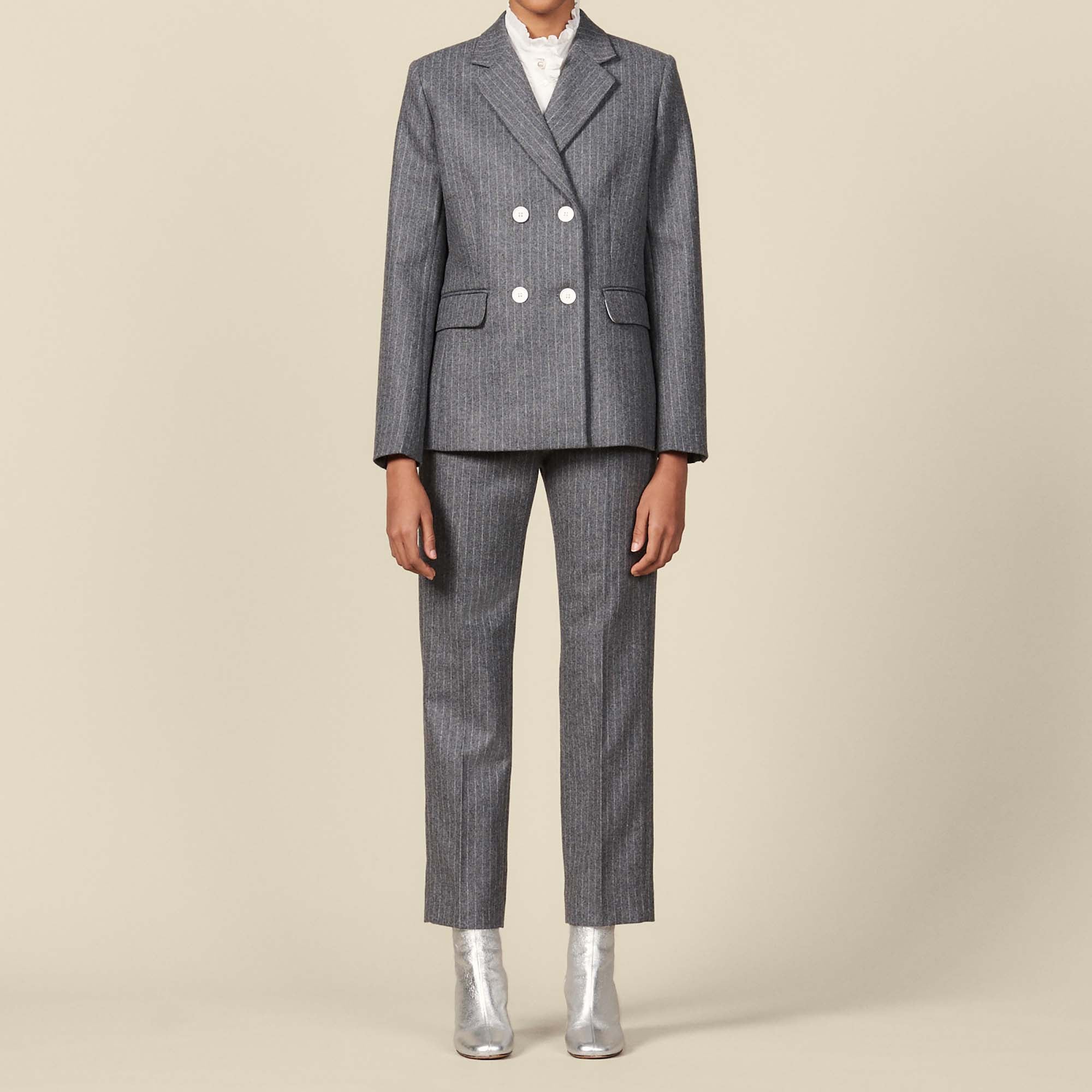 Veste de tailleur femme Sandro; Veste de tailleur en flanelle; Rayures tennis; Col de tailleur; Boutons contrastants; Deux poches à revers; Cette veste est assortie au ; Le mannequin porte une taille 36/UK 8/US 26 Référence : SFPVE00229