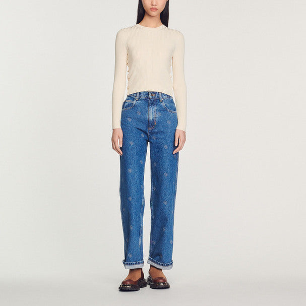 Pull court en maille fine muni de manches longues, d'un col rond et d'un dos nu à nouer. ; Pull court en maille Sandro Femme ; Manches longues ; Col rond ; Dos nu à liens ; Coupe près du corps Ce modèle est en viscose éco-responsable. Nos designers ont choisi cette fibre issue de la pulpe de bois parce qu’elle garantit la gestion durable des forêts.Le mannequin porte une taille 36 / UK 8 / US 2-4 et mesure 180 cm Référence : SFPPU01621