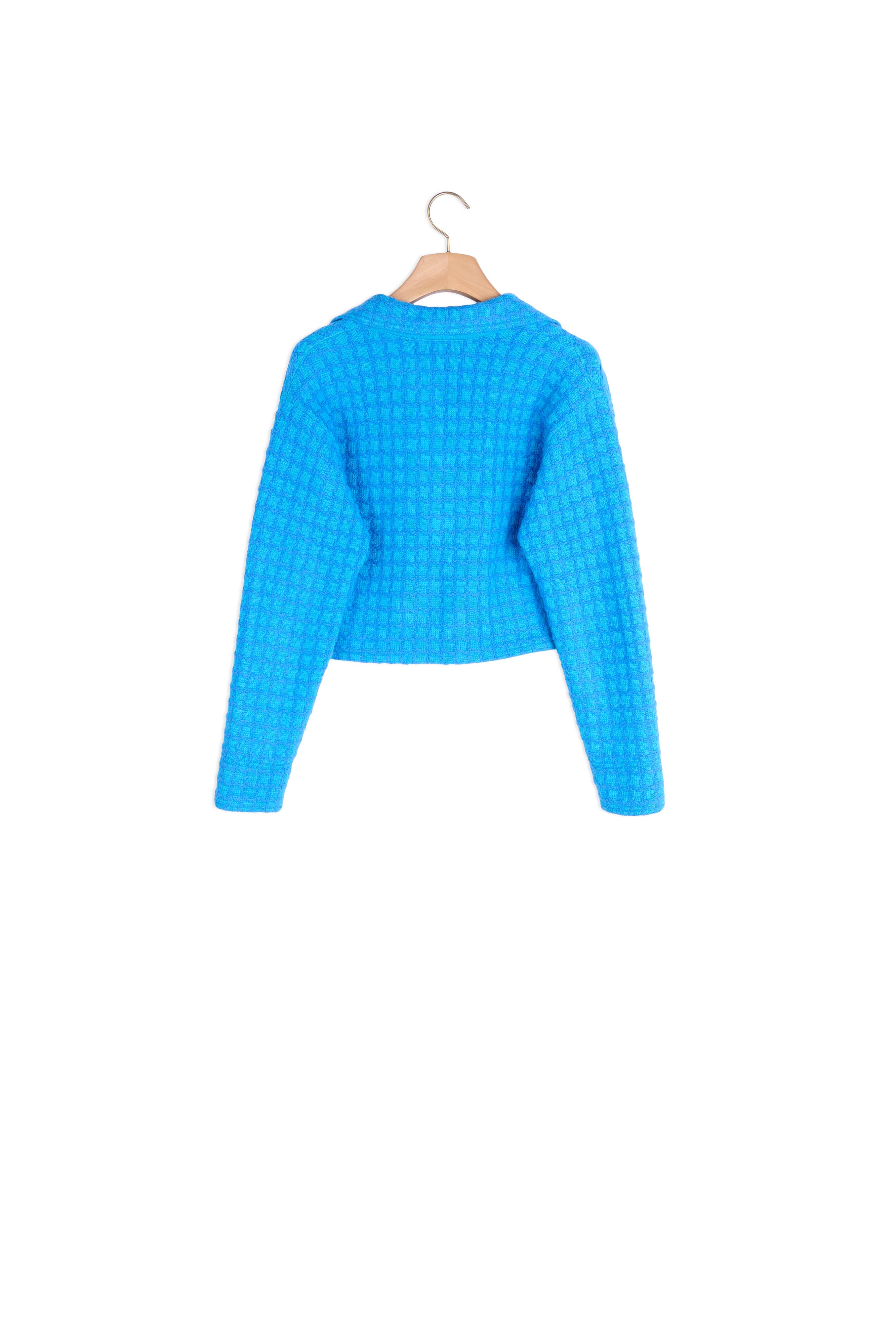 Cardicoat court façon veste en tweed, muni de manches longues, de poches à rabats et de boutons dorés.
