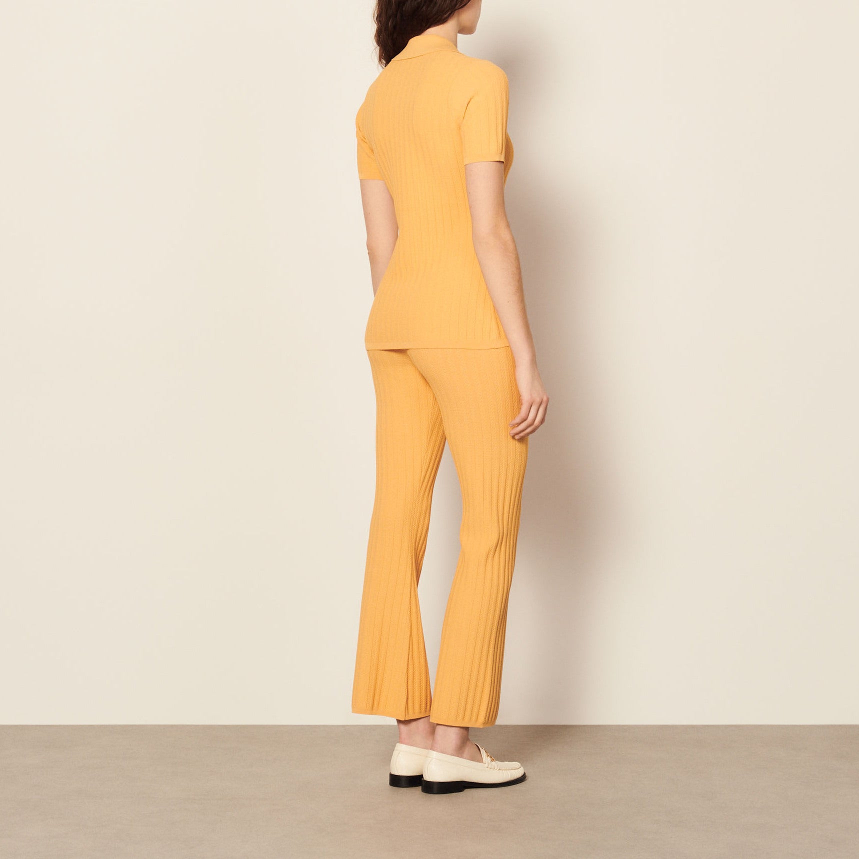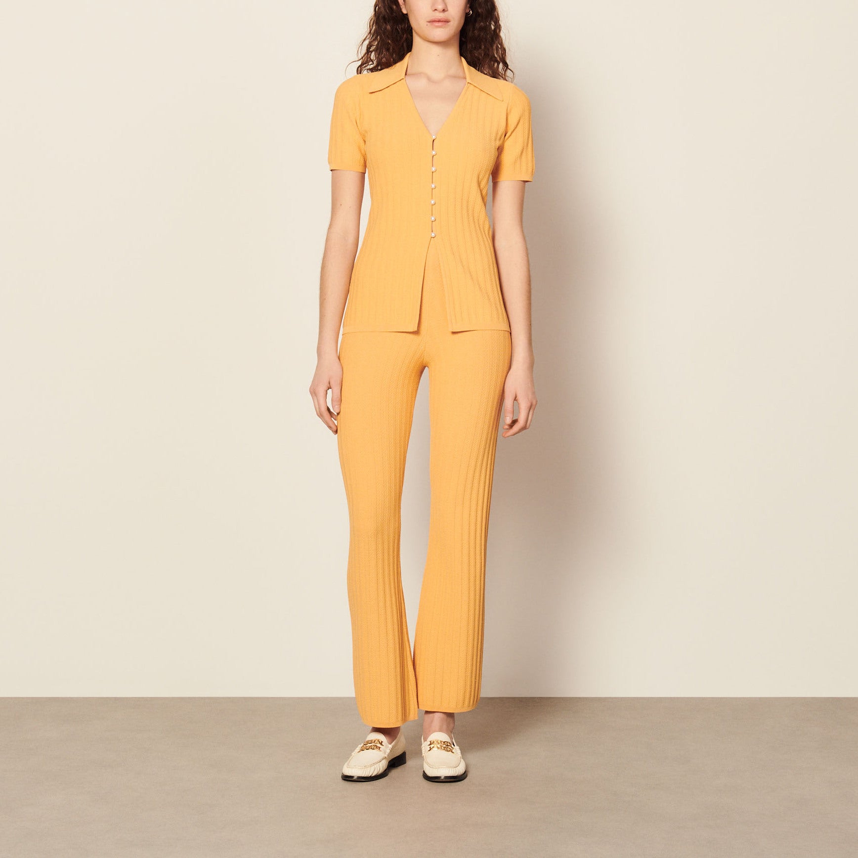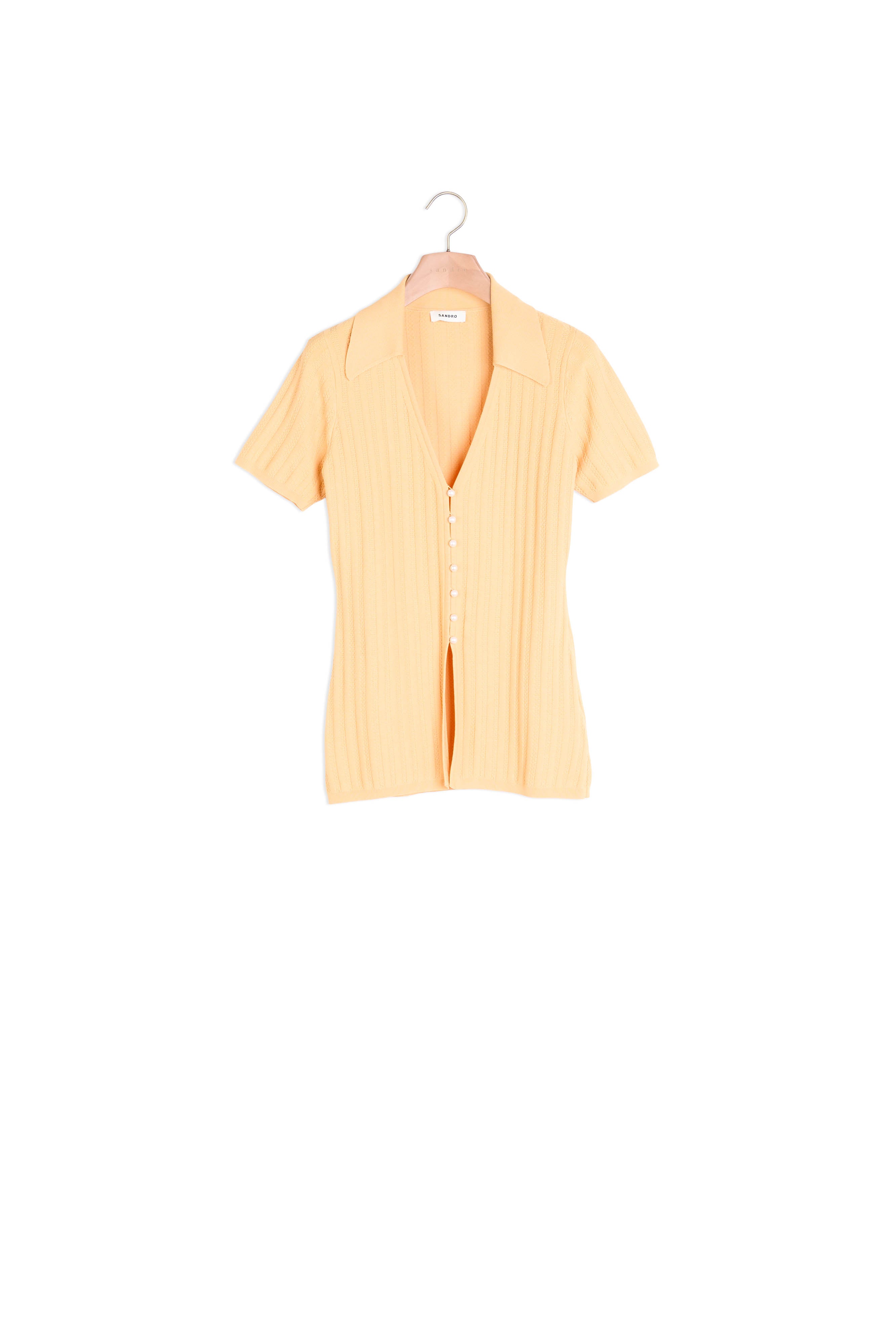 Top long à manches courtes ouvert sur le devant, muni d'un col chemise, d'une encolure en V et de boutons perles. ; Top long Sandro Femme ; Maille point fantaisie ; Encolure en V ; Col chemise ; Manches courtes ; Boutons esprit perles ; Fente devant ; Coupe près du corps Ce modèle est en viscose éco-responsable. Nos designers ont choisi cette fibre issue de la pulpe de bois parce qu’elle garantit la gestion durable des forêts.Le mannequin porte une taille S / UK 8 / US 2-4 et mesure 180cm Ce top est assorti au Référence : SFPCA00588