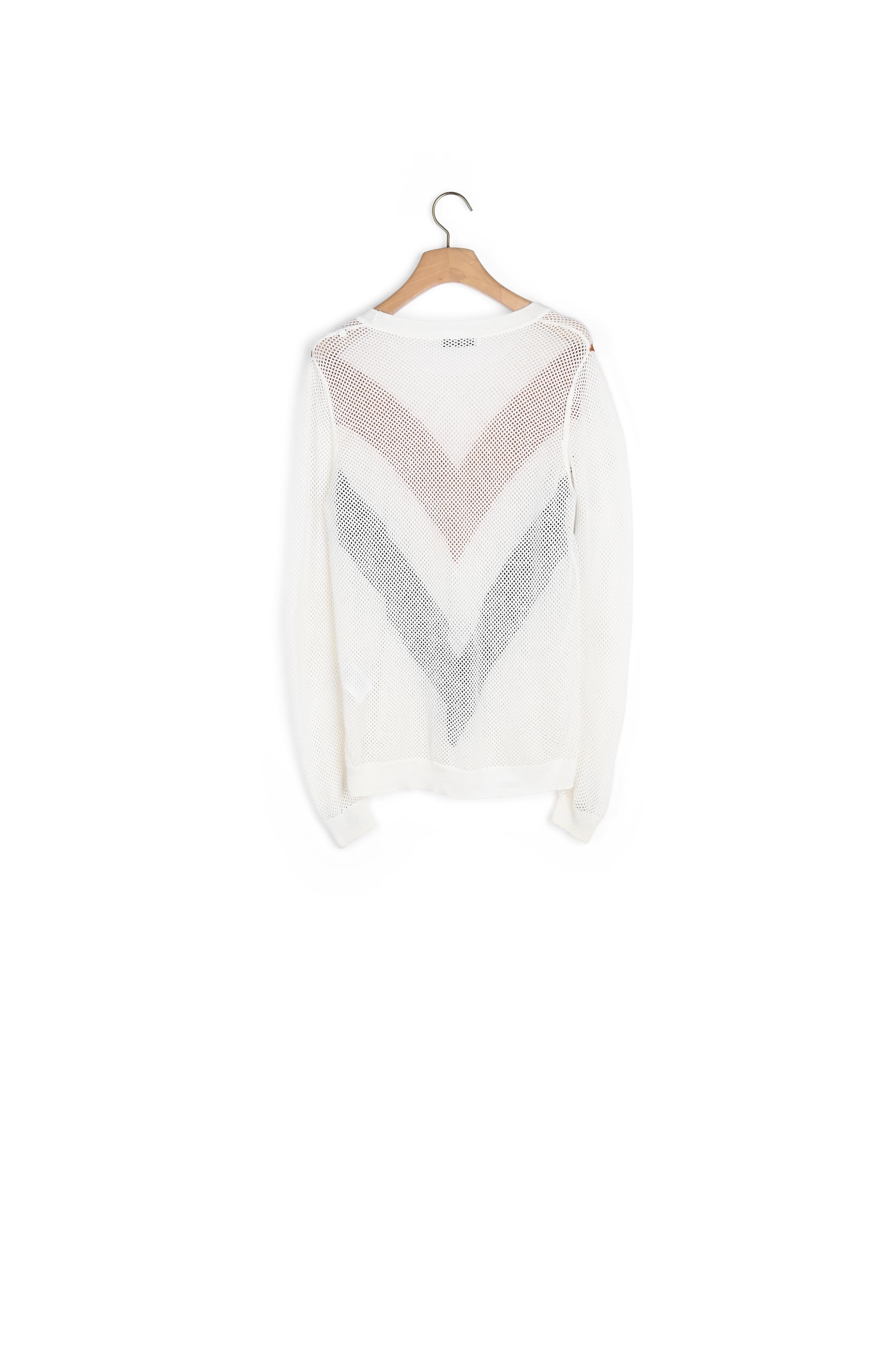 Pull Sandro à manches longues et col rond Modèle transparent en maille et imprimé de deux "V" de couleurs contrastées A porter avec un jean pour un look contemporain Le mannequin porte une taille 1 Référence : S0893E