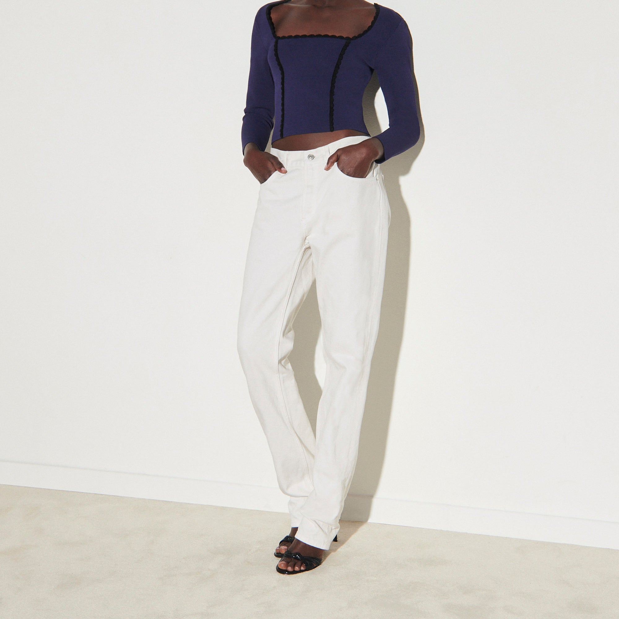 Top femme Sandro; Top court ; Finitions contrastées; Encolure carrée devant et dos; Manches longues; Coupe près du corps; Ce top est assorti à la; Le mannequin porte une taille 1 Référence : SFPPU00880