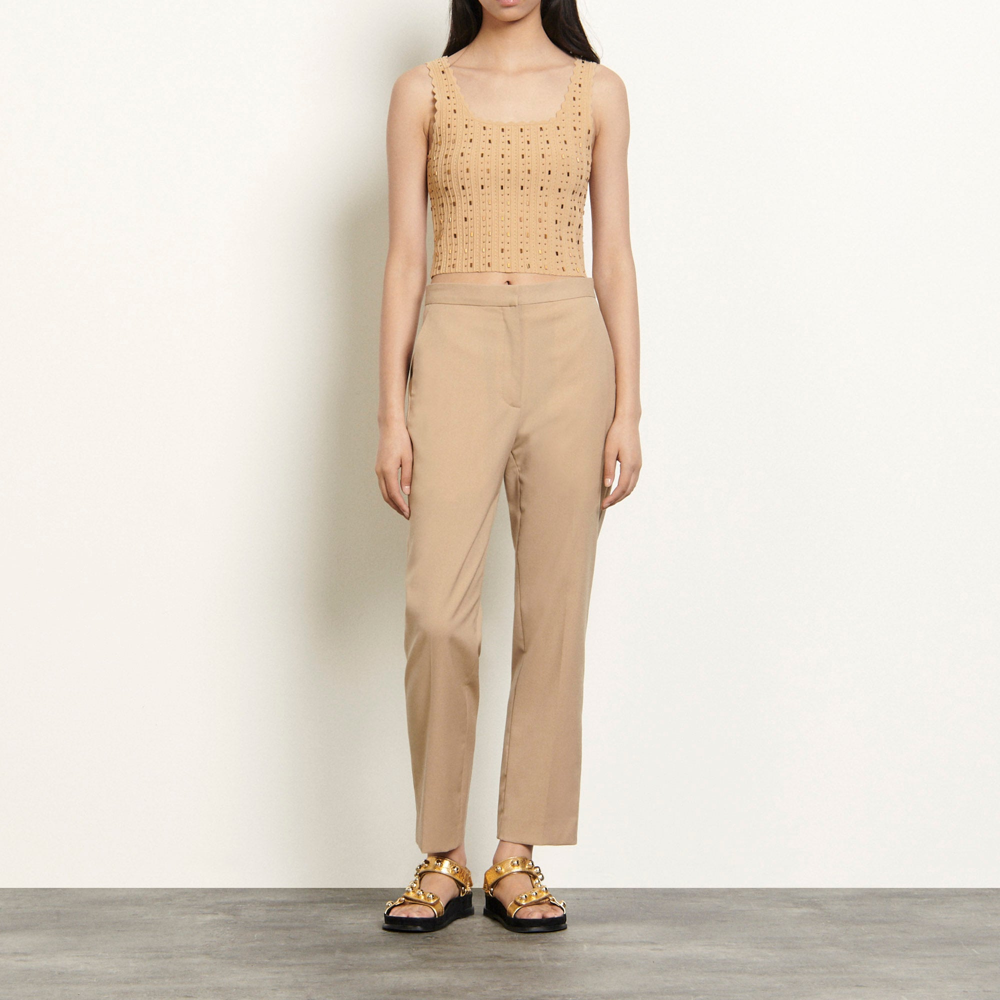 Brassière femme Sandro; Brassière en maille; Coupe courte; Bretelles; Perles bijoux brodées; Le mannequin porte une taille 1 Référence : SFPPU00746